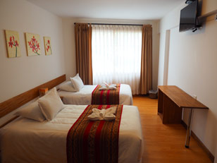 マチュピチュ駅から徒歩5分のところにあるスタンダードクラスホテルです。遺跡へ登るバスの発着所までも近く、観光に便利です。屋上テラスからは素晴らしい景色を一望できます。 全室バスタブ付きで旅の疲れを癒すのに最適です。日本語が話せるオーナーがいることもあります。3つ星ながら安心して快適にお過ごしいただけます。